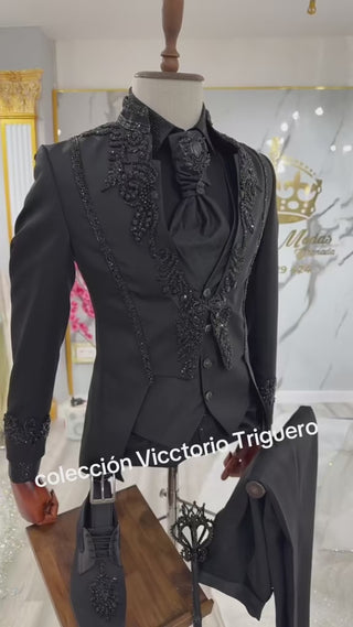 TRAJE NEGRO PEDRERIA COLECCIÓN VICCTORIO TRIGUERO REFG .2165