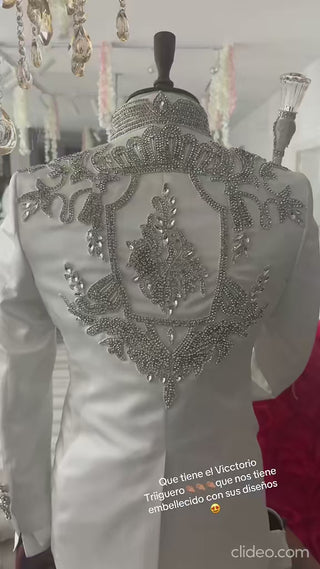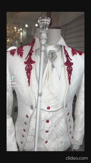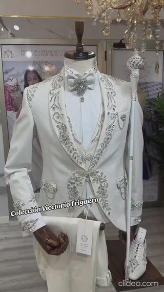 TRAJE BLANCO CON PEDRERIA ROJA COLECIÓN VICCTORIO TRIGUERO REF. 2087