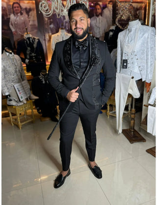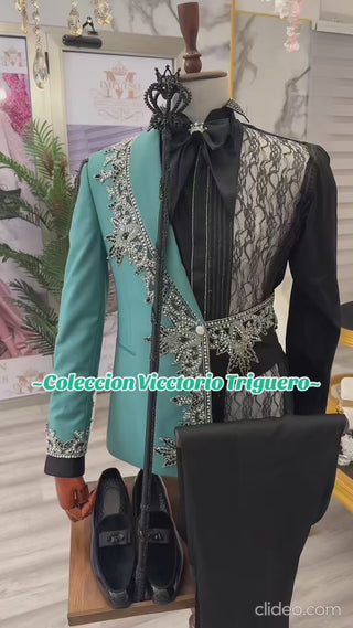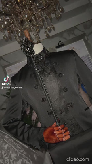 TRAJE NEGRO CON PEDRERIA COLECCIÓN VICCTORIO TRIGUERO REF. 1976