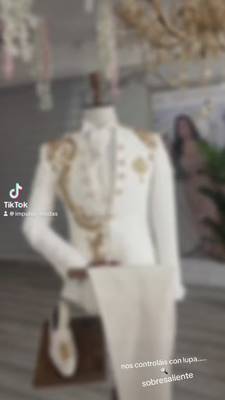 TRAJE BLANCO CON PEDRERIA DORADA COLECCIÓN VICTTORIO TRIGUERO REF. 2050