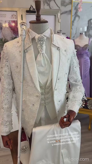 TRAJE BLANCO CON FLORES COLECCIÓN VICCTORIO TRIGUERO REF. 2061