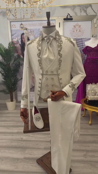 TRAJE BLANCO CON PEDRERIA COLECCIÓN VICTTORIO TRIGUERO REF. 2052