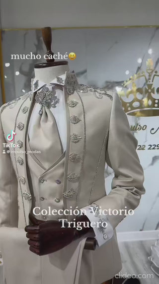 TRAJE CON PEDRERIA BEIGE COLECCION VICCTORIO TRIGUERO REF. 1926