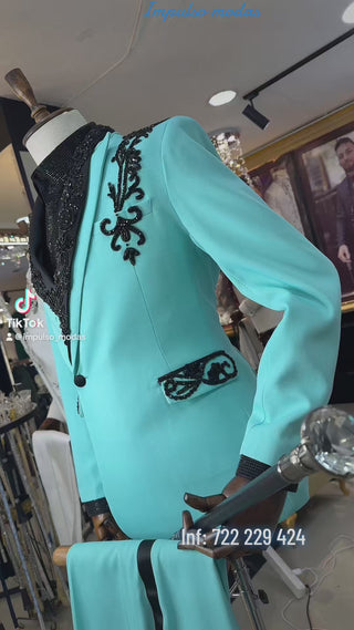 TRAJE TURQUESA CON PEDRERIA COLECCION VICCTORIO TRIGUERO REF. 1900