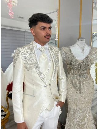 TRAJE BLANCO CON PEDRERIA COLECCION VICCTORIO TRIGUERO REF.1812