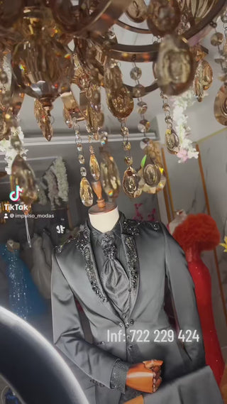 TRAJE NEGRO CON PEDRERIA COLECCION VICCTORIO TRIGUERO REF. 1836